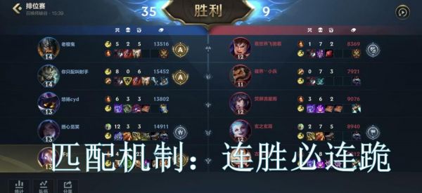 lol手游的排位机制和王者荣耀差不多,毕竟是一个公司的出品。其实很多玩王者的玩家都有心得,连胜必连跪,连跪必有大神带。记着这几句话。如果自己连胜后出现一把队友特别坑,很有可能你自己就是那个“大神”带着四个坑队友了。你去看一下对局详情队友的战绩。如果还出现抢位置,开局就被打爆的情况。赶紧要收手了。不出意外接下来匹配的都是这些队友。这就是竞技游戏基本都会存在的强行匹配胜率。真的很恶心。