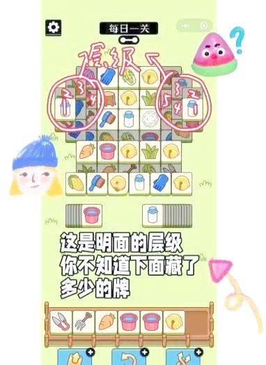 首先,了解游戏的基本玩法至关重要。这款游戏以其低概率、高难度的特性著称,要求玩家具备敏锐的观察力和策略性的思考。在游戏中,方块主要分为三大类别:食物类、工具类以及自然类,共计16种不同的牌型。但消除栏仅有7个位置,且牌叠牌现象严重,这无疑增加了游戏的难度。