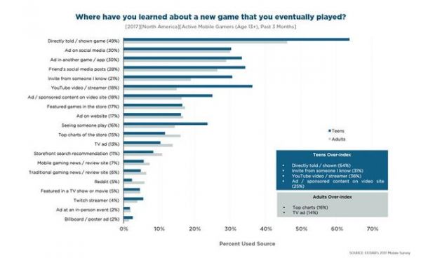 涉及游戏习惯时,在主播或网红带动下开始玩一款新的手游的青少年玩家数量是成年玩家的两倍之多,这一点都不令人觉得意外。令人惊讶的是,青少年玩家还能通过直接的社交渠道推动游戏的病毒式传播,他们不仅会与朋友们讨论自己所喜爱的游戏,更喜欢和他们一起玩这些游戏。