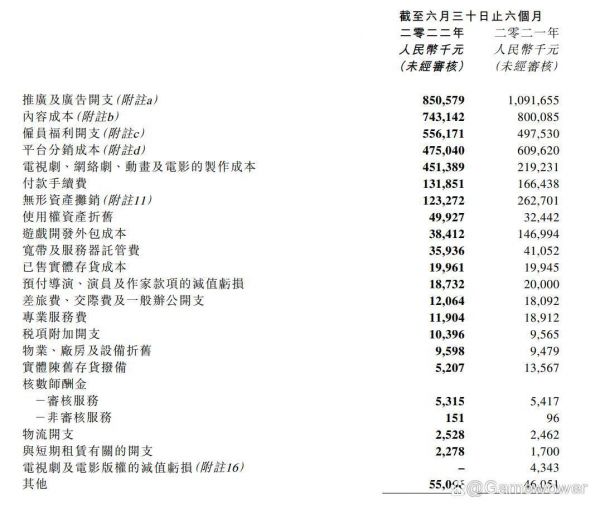 电视剧、网络剧、电影、版权授权及动画收入均有增长,但被自营游戏收入下滑所抵消,意味着授权合作发展,自研业务衰落。同时根据财报,上半年游戏开发外包成本砍了接近四分之三。
