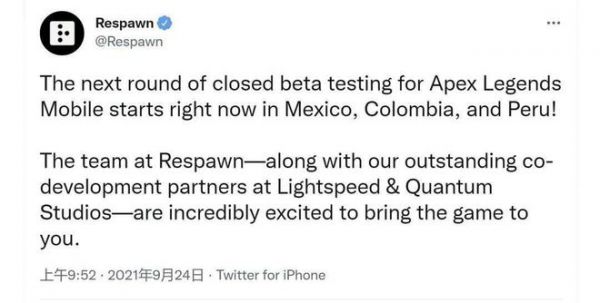 事实上,英雄联盟手游并不是光子与海外厂商合作开发的第一个大IP。9月底,EA旗下重生工作室(Respawn Entertainment)官宣与光子工作室群合作开发Apex手游,并将光子定义为“联合开发伙伴”。