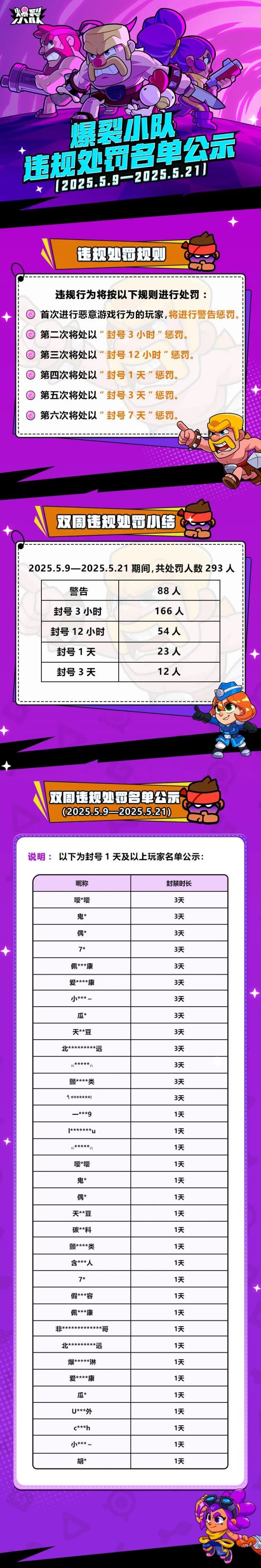 爆裂小队违规处罚名单公示!(5.9-5.21)