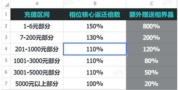 测试期间通过直接支付购买游戏内礼包,也将根据礼包实付金额,按照"【规则1】基础充值返还规则"中的计算标准在正式上线后返还对应充值金额的相位核心,并额外赠送相界晶。