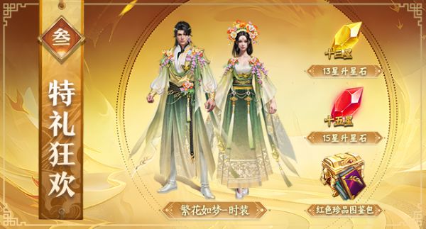 参与活动便有机会获取15星升星石,13星升星石,红色图鉴以及珍稀限定时装——“繁花如梦”!