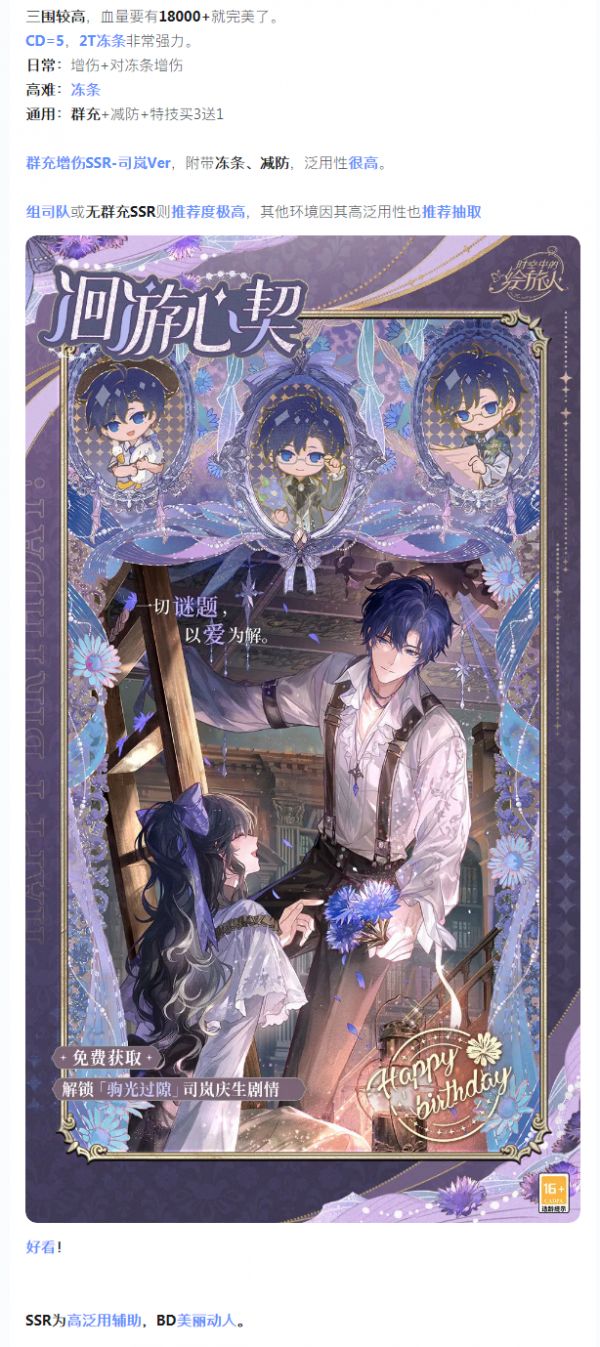 【攻略分享】驹光过隙-2025司岚生日卡牌