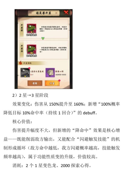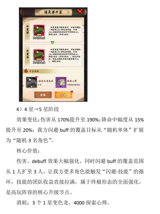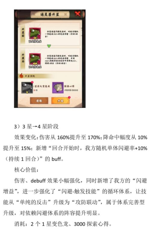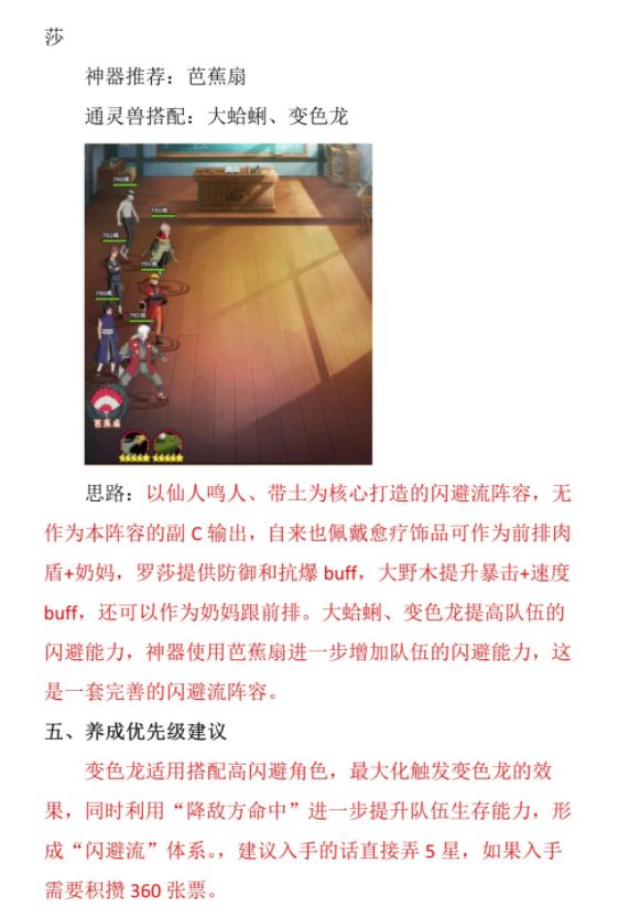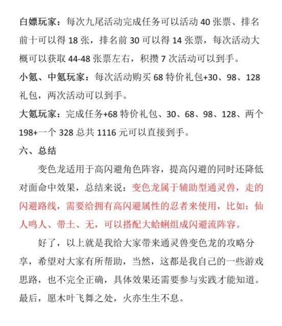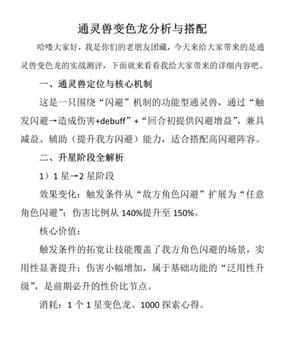 变色龙适用于高闪避角色阵容,提高闪避的同时还降低对面命中效果,总结来说:变色龙属于辅助型通灵兽,走的闪避路线,需要给拥有高闪避属性的忍者来使用,比如:仙人鸣人、带土、无,可以搭配大蛤组成闪避流阵容。