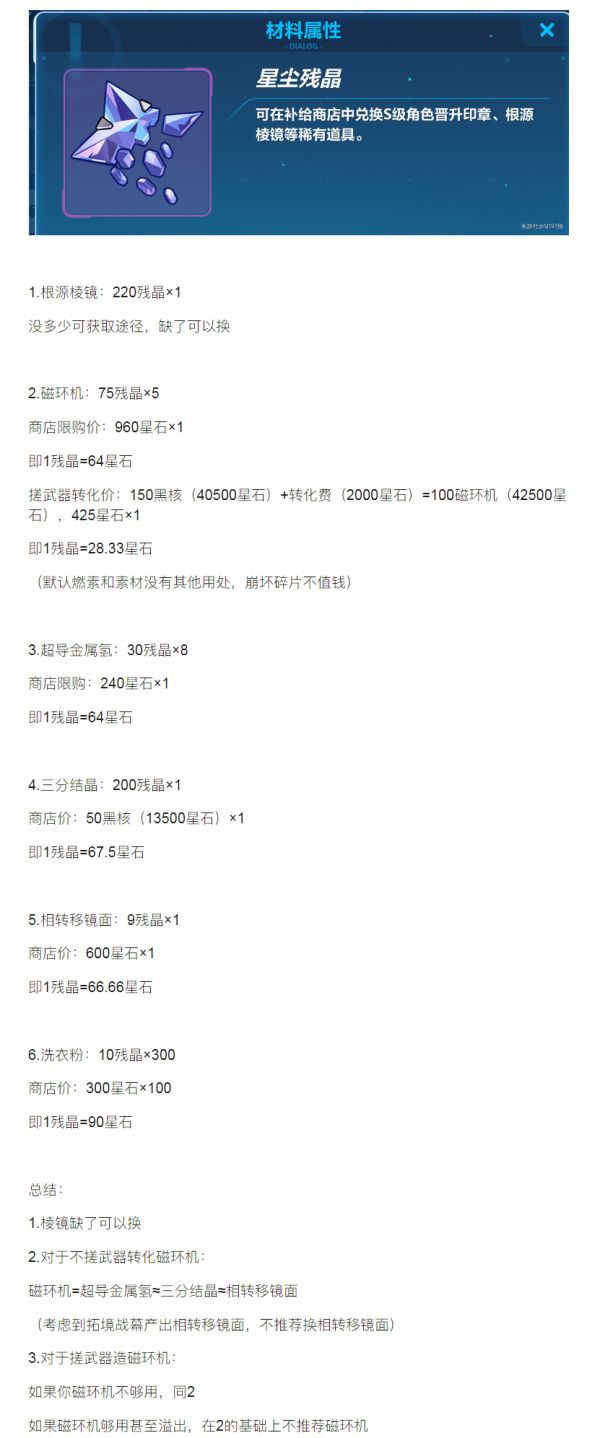 【攻略分享】补给残晶换哪个常驻材料更值?