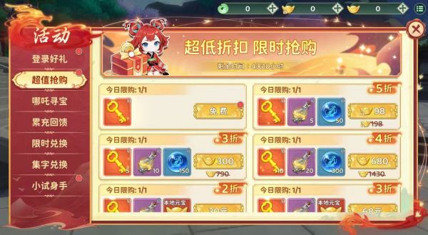 活动期间,每日登录可免费领取一把宝箱钥匙,