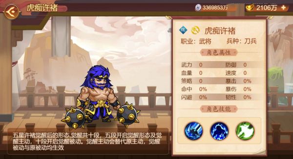 许褚:开启觉醒养成,解锁觉醒形象。