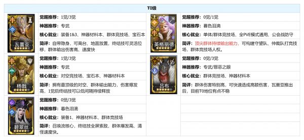 3、T0代表人权,获取后可提升游戏体验;T1代表主力英雄,可优先选择;T2代表可替代英雄,在缺少T1时可选择。