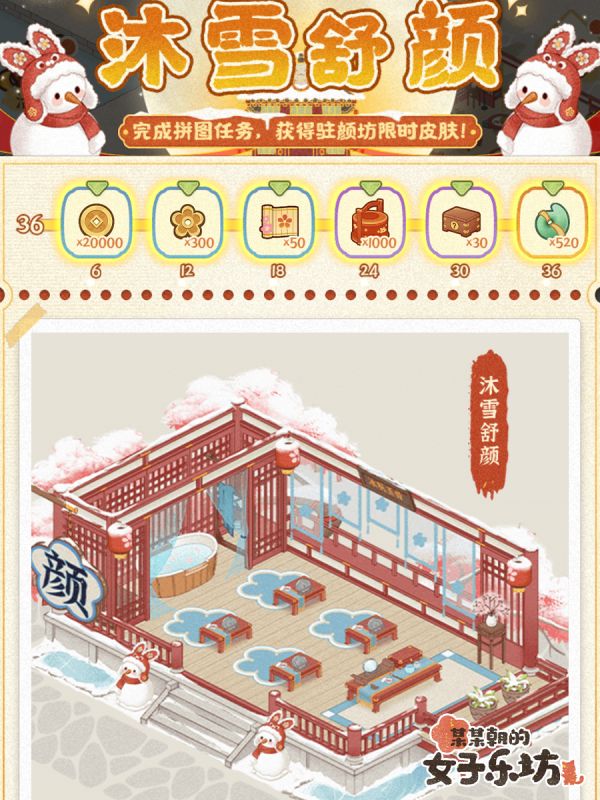 四、沐雪舒颜,完成拼图即可获得驻颜坊限定皮肤