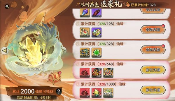 活动期间,祖师累计充值达到一定数量,还可领取真灵精血、天机万象匣、珍稀灵秀碎片等道具奖励,感兴趣的祖师届时可以了解下哦~