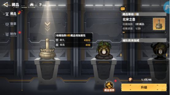 升级藏品等级和进行藏品保养能获得全队属性加成,需要高浓度粒子(升星和建造获得)和藏品修复工具(主要通过充值获得)