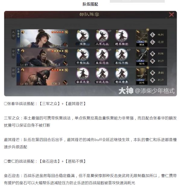 【攻略分享】平民黑科技强队-双封体系张春华曹仁乐进【无妖术肉步】