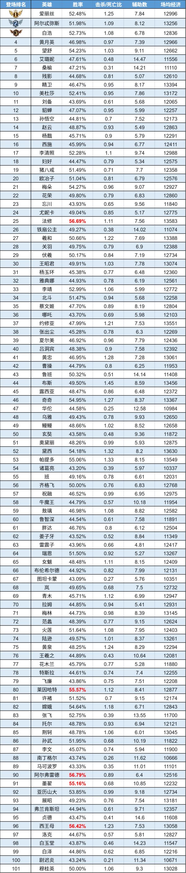 【低段位】法修胜率跃升至第二,昔日王者-西王母跌落至第三;黛西登顶均场经济TOP1。
