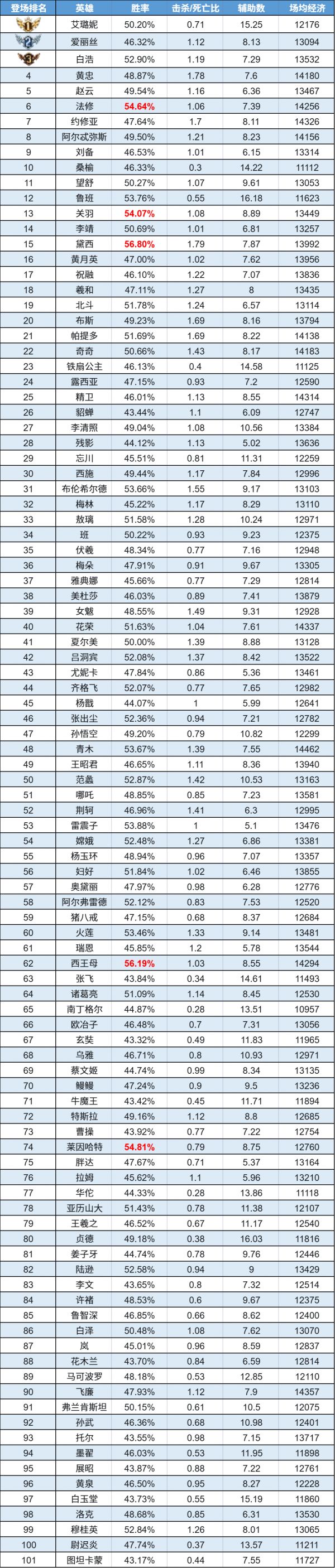 趣味数据|关羽登ban位之巅 飞廉低段理财第一