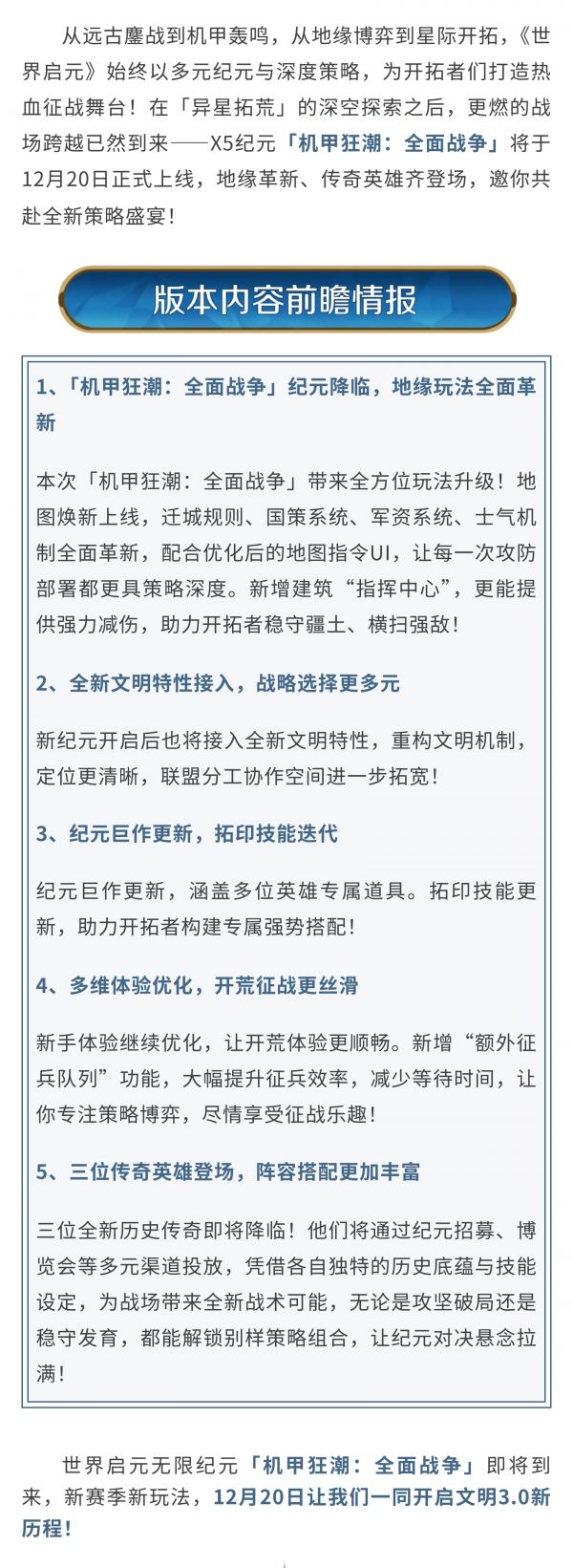 新版本内容前瞻丨机甲狂潮:全面战争即将来袭,神机天降,文明焕新!