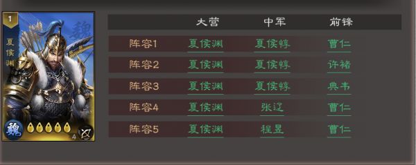 推荐5套实用阵容(夏侯渊站大营):