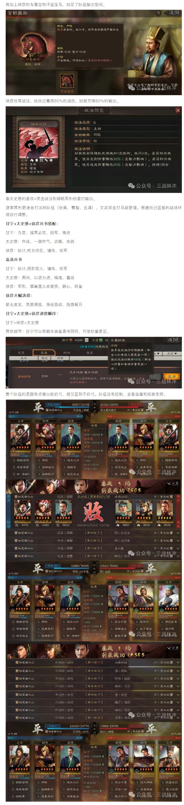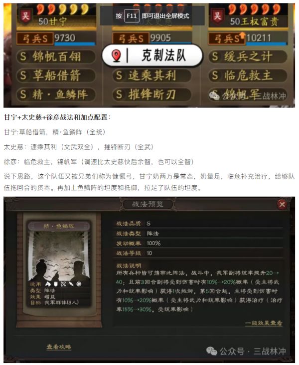 【攻略分享】三战史上最强虎臣弓:甘宁+太史慈+徐彦战法兵书配速等细节深度解析