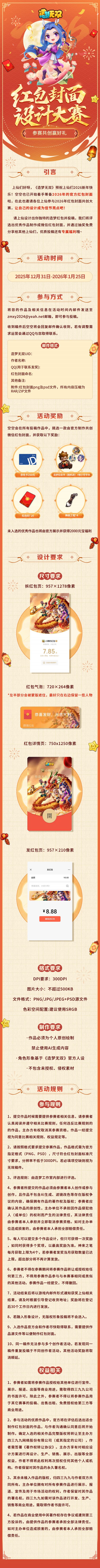 上仙们好呀!辞旧迎新,福满乾坤,2026年的钟声即将敲响~空空在这里祝各位上仙新年吉祥啦~去年多亏了上仙们妙笔生花,让空空的新年红包新增了不少色彩,今年也期待上仙们继续挥洒灵感,让你的设计点亮新年的祝福吧!