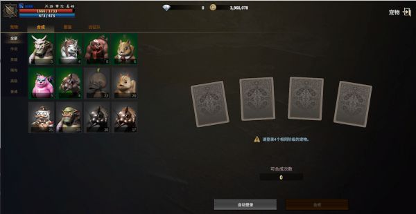 合成:通过合成功能有概率获得下一个品质,失败会获得一个原品质;合成有保底