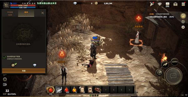 1、死亡后丢失的经验值可以通过每个城镇中的“恢复女神”NPC或死亡提示界面来恢复。