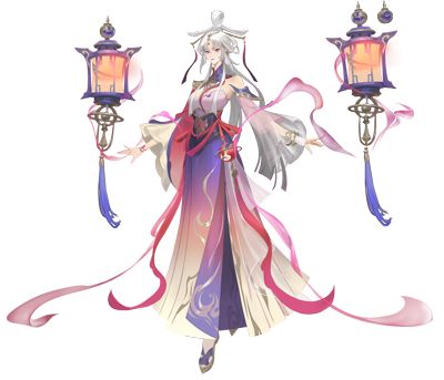 在黄泉重做的形象设计上,我们降低其恐怖成分,令她以符合现代审美的柔美少女形象登场。在服装设计上,采用轻量感的国风飘逸剪裁,弱化传统黄泉的沉重感。以白灰色为基底,叠加粉紫渐变裙摆,同时辅以丝带元素。黄泉的红色丝带来自彼岸花的造型,随动作飘动时泛起微光,既添妩媚感,又暗合黄泉核心意象。