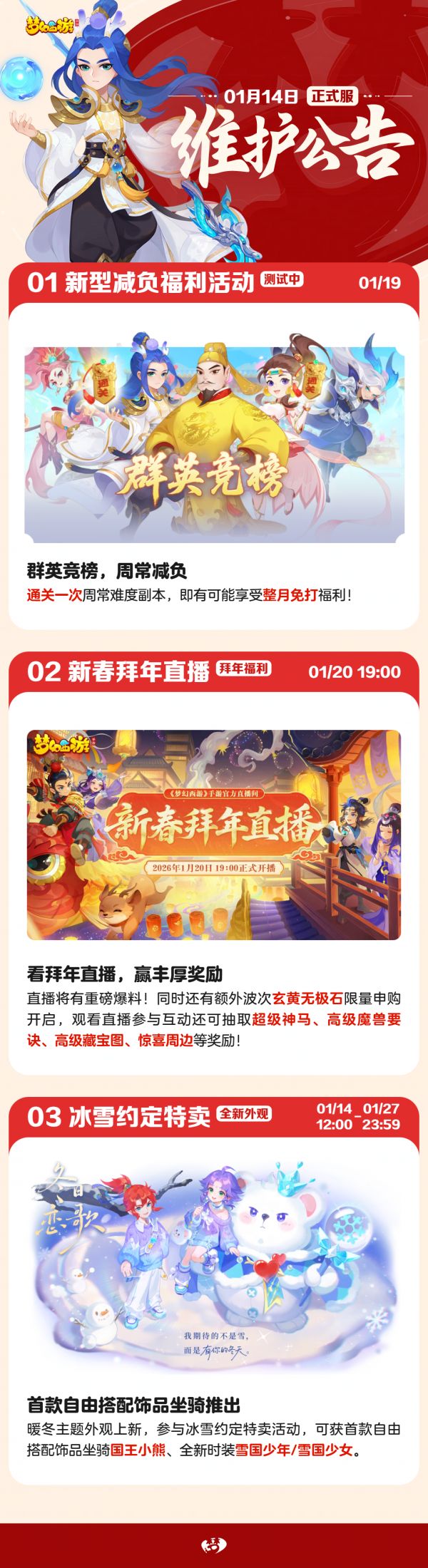 一年一度的拜年福利“新春拜年直播”将于2026年1月20日19:00开启。届时,开发组将带来年度回顾、全新典藏外观、最新开发内容等重磅爆料!同时还有额外波次玄黄无极石限量申购开启,观看直播参与互动还可抽取超级神马、高级魔兽要诀、高级藏宝图、惊喜周边等奖励,中奖率超高,不要错过哦~