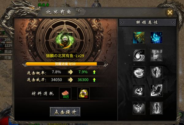 1、可消耗灵符以及连击宝玉提升北冥有鱼等级