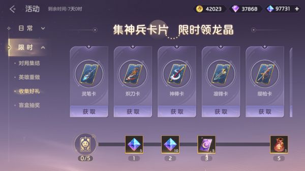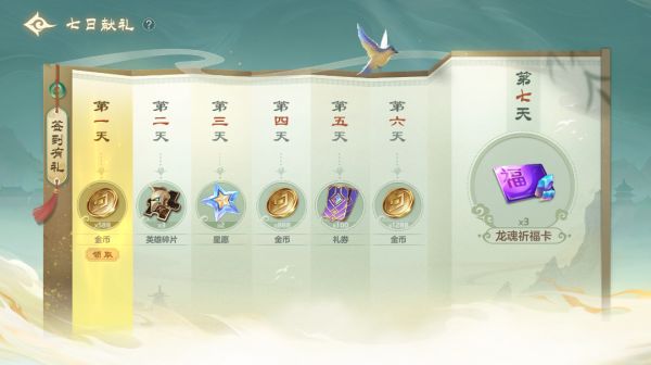 每日登录即可领取龙魂祈福卡、礼券、星愿、英雄碎片等奖励。
