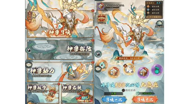 ○使用【神兽召唤令】召唤,100抽必得九色鹿碎片(保底重置)