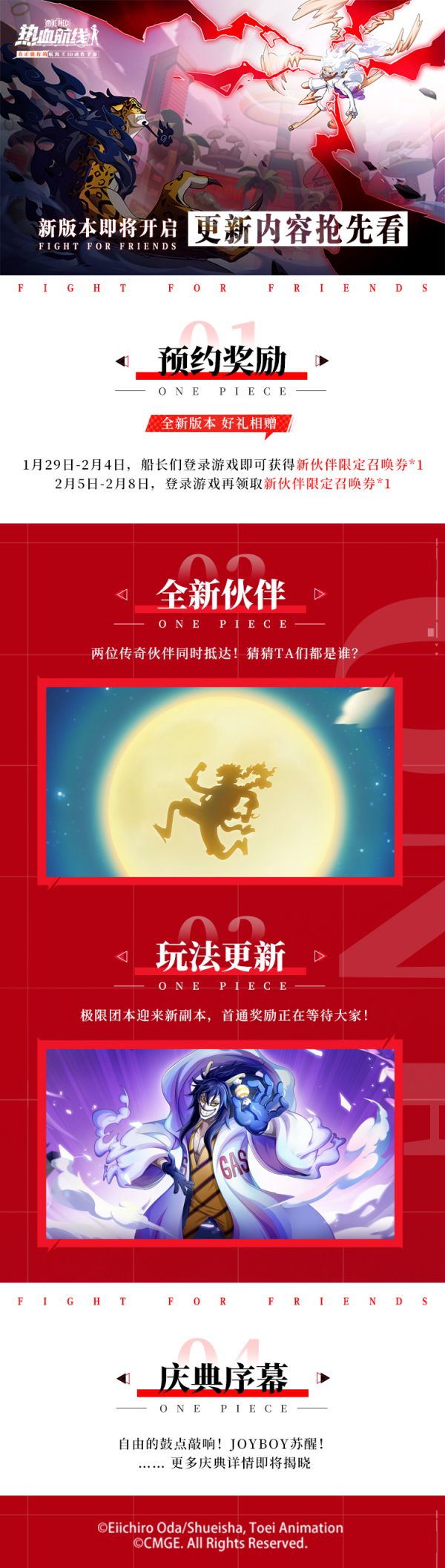 5挡路飞觉醒庆典热血来袭,新伙伴、新活动即将陆续登场!还有版本预约好礼等待领取!