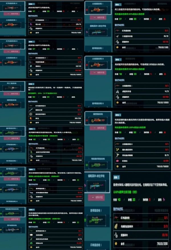 相信大家看到数值,会觉得毒伤流无敌了,但实际上毒出伤慢,每打一发就要等8~10秒才能打下一枪,要不然毒伤就打不满,而大家最吹嘘的死步和死狙(死狙其实都可以删掉,同样的30%即死,步枪多那么多发弹药,概率明显更大)经数值对比则会发现没有火焰增伤流伤害高,因此,大家如果是奔着打BOSS战等需要输出伤害的目的,选火焰分支的步枪准没错