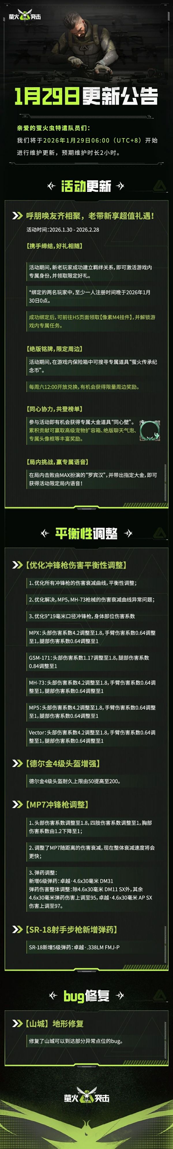 更新公告|冲锋枪伤害平衡性调优、山城点位Bug已修复!