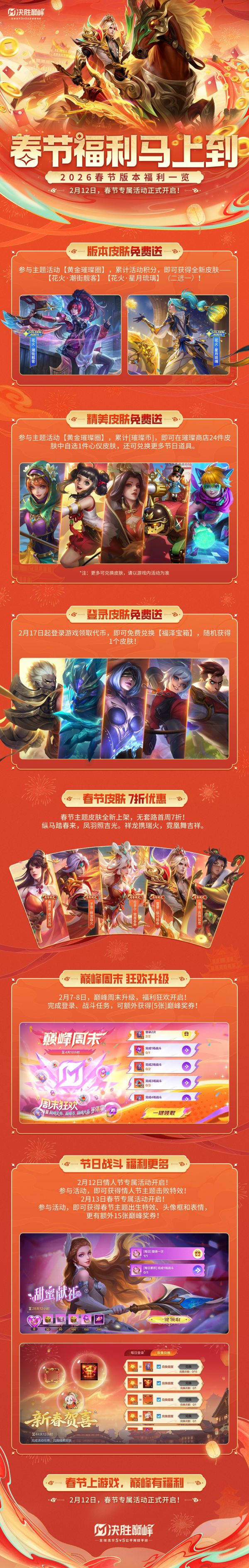 同时2月17日春节登录免费领取皮肤宝箱,5款春节主题皮肤首周7折优惠~