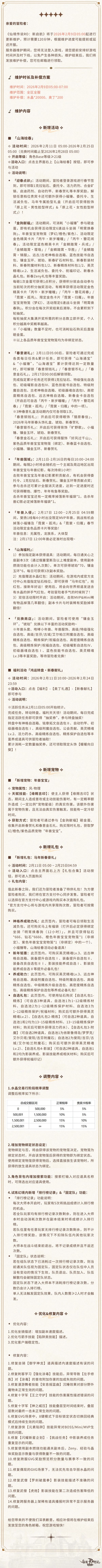 2月9日更新维护公告