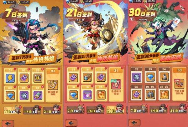 每日完成签到,游戏道具、自选红卡英雄以及限定皮肤装扮送不停!