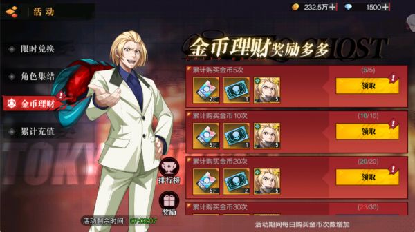 金币购买每天三次,分别是6:00、12:00、18:00;每天这三次都可以准时上去买完它,后期升级,升星都需要大量的金币;而且开服前8天都能通过购买金币次数获得角色碎片卡!