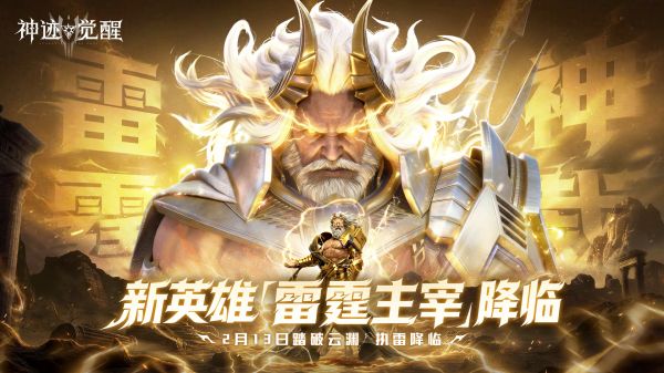雷霆撕空,神权天授!新英雄「雷霆主宰」2月13日踏破云渊,执雷降临!参与限时「天启」祈愿活动,即有机会驾驭雷霆之力,将「雷霆主宰」、专属神兵与万象资源尽握掌中!