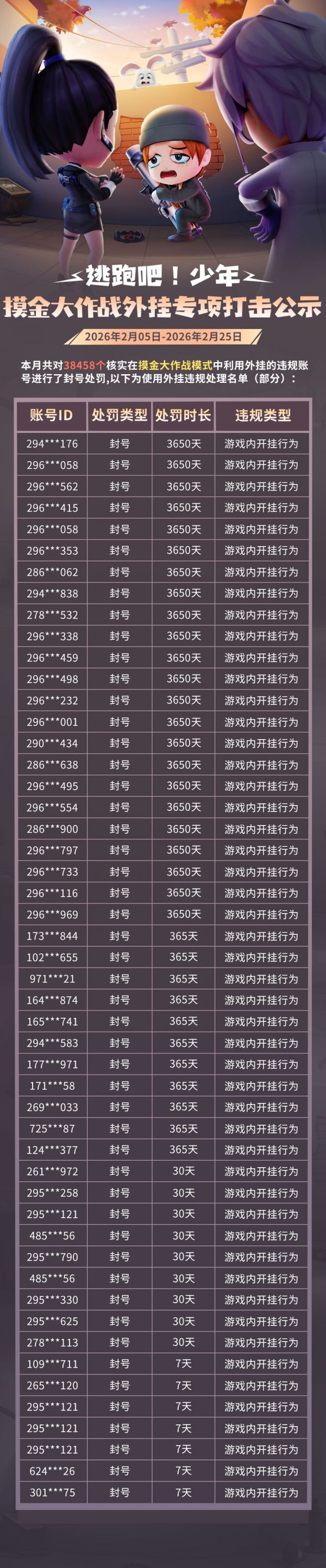 【摸金大作战模式】安全处罚公示(2月5日-2月25日)