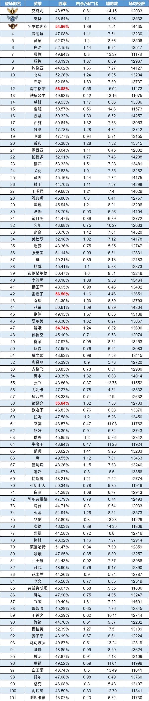 趣味数据|嫦娥斩获低段位胜率TOP2