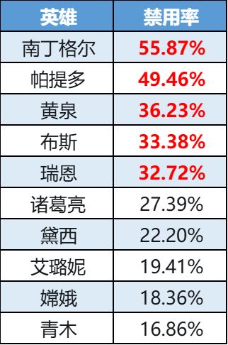 【禁用率】南丁格尔创新高,诸葛亮排名上升。