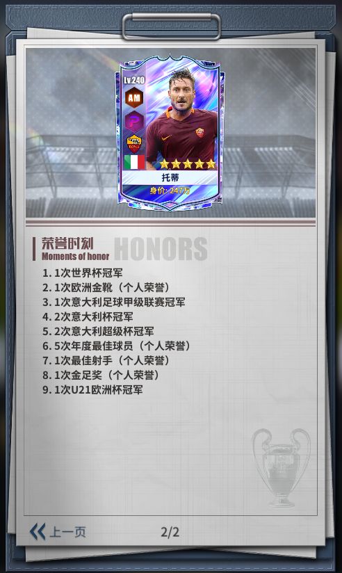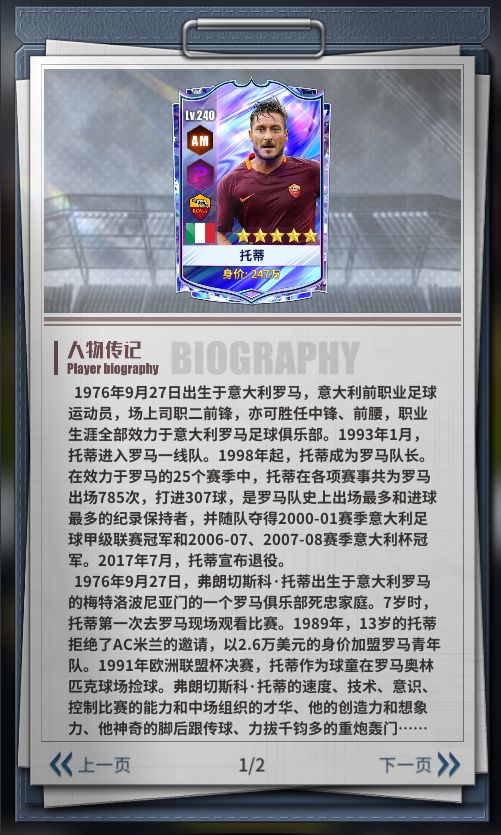 托蒂:罗马与意大利的永恒队长,被誉为“罗马王子”,以其开阔的视野、精准的传球、出色的射术和强大的身体素质著称。