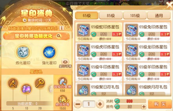 服务器等级达到89级且角色等级达到65级的少侠即可参与这场打造狂欢!活动期间,每一次的炼化或强化各等级星印都能积攒盛典积分,炼化出特定特效星印或使用超级点星锤强化,还能获得额外积分哦!