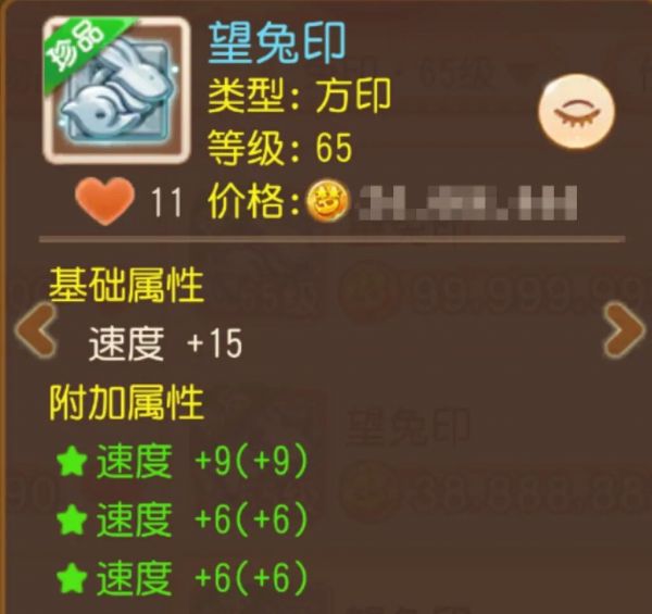 追求极限速度的少侠们,准备好尖叫了吗?这枚兔印基础属性及3条附加属性满强化后加了57点速度!