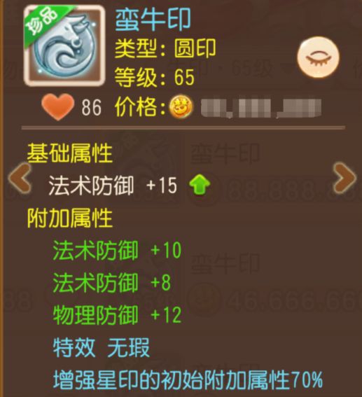 这枚星印的基础法防达27点,已然逼近满属性。附加属性初始更是直接提供了27点法防与18点物防,初始总法防就达到54点!