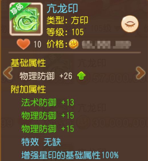 喜欢面板属性的玩家不容错过之印来了!基础属性初始增加26点物防,附加属性狂堆30点物防与13点法防。配合“无缺”特效,初始状态下,单物防就增加了56点!
