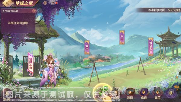 1、活动期间,小将军们可通过主界面进入【梦蝶之牵】活动,帮助貂蝉完成蝴蝶养育。