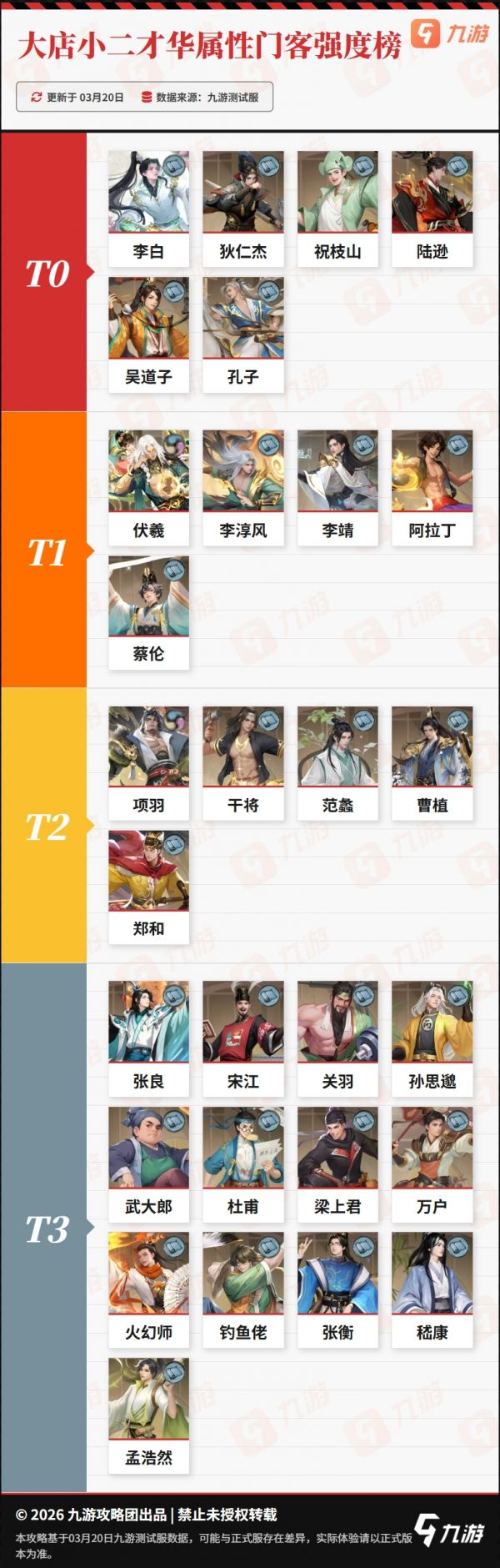 【独家攻略】大店小二门客强度榜-才华