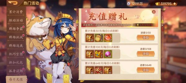 活动内容:活动期间,每日充值达到额度即可领取奖励!